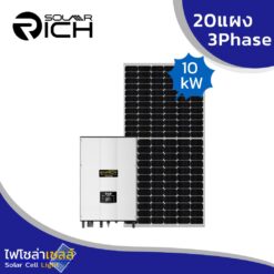 โซล่ารูฟท็อป 10 กิโลวัตต์ 3เฟส พร้อมแผงโซล่าเซลล์ 20แผง SolarRich ประหยัดไฟประมาณ 6,000 บาท/เดือน